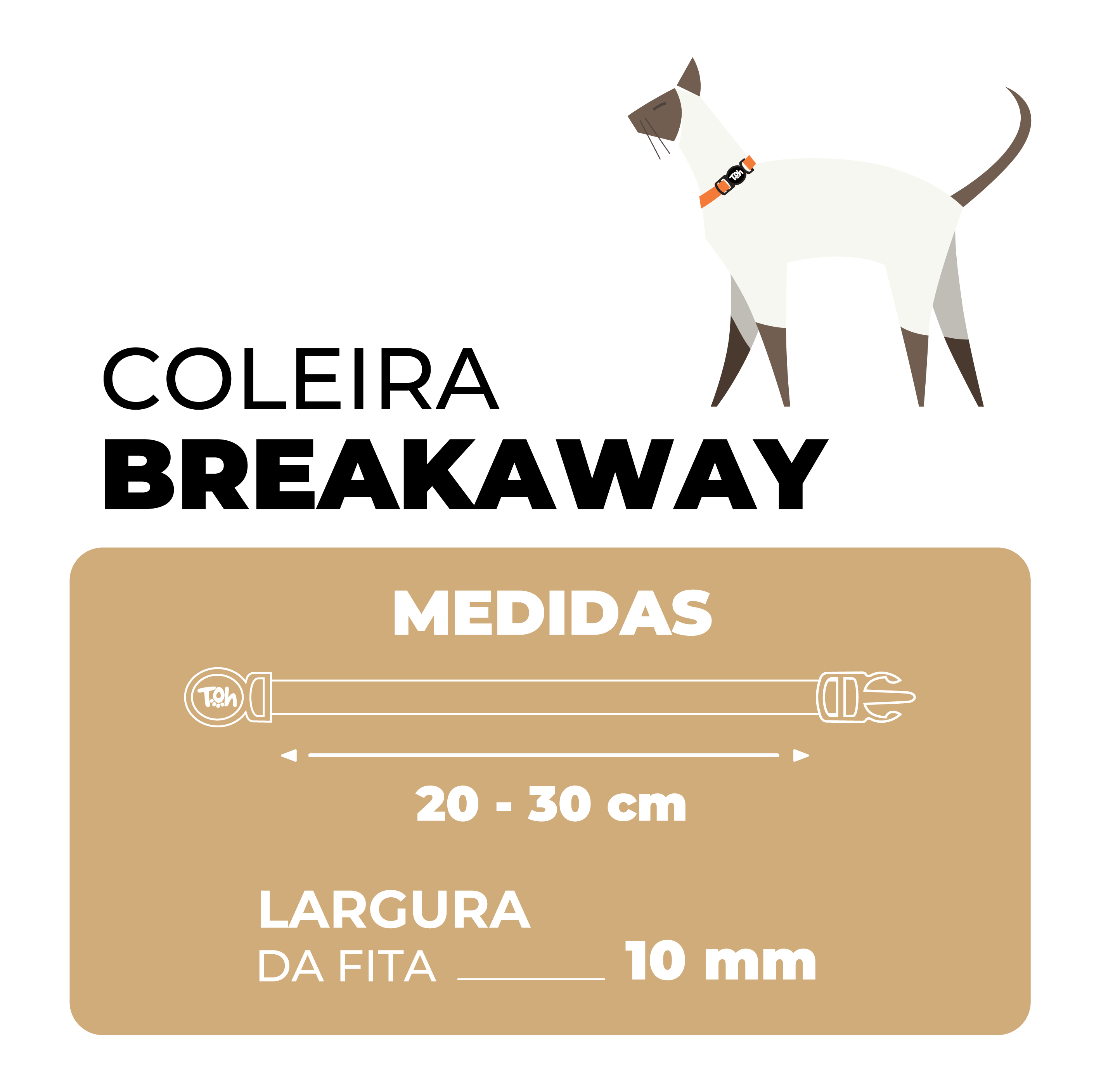 A nossa Coleira de Gato conta com sistema de fecho Abre Fácil (Breakaway), que garante a segurança do seu gato caso se enrosque. É indicada para todas as raças e portes de gatos.