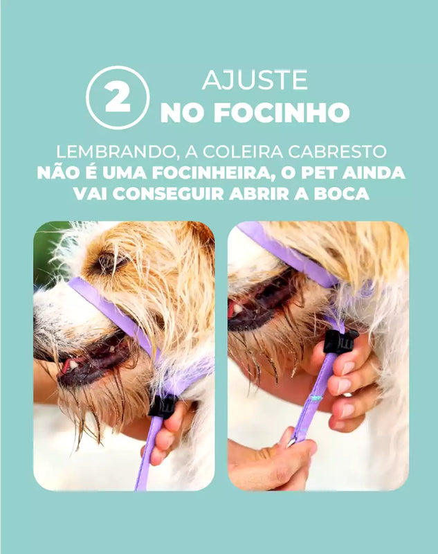 A nossa Coleira Cabresto é ideal para corrigir o comportamento do seu pet durante os passeios, e ele também auxilia no adestramento. Indicada para todas as raças e tamanhos de cães, essa coleira não é uma focinheira, permitindo que o animal coma e beba sem a necessidade de remover o acessório.